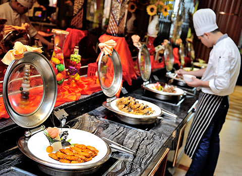 酒店擁有風(fēng)格迥異的各式餐廳:“世紀(jì)廳”大型宴會廳豪華典雅,是舉辦各類活動及婚宴、壽宴、滿月宴的首選; 32間中餐包廂富麗堂皇,是您宴請貴賓的理想去處,您可以品嘗到原汁原味的各式海鮮;大堂吧供應(yīng)價(jià)廉物美的各式飲品、茶點(diǎn),是賓客休閑會友的好去處。